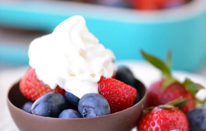 9. Pipe each cupcake with the fresh cream. Top each one with a Pascall ChocTime chocolate. Finish off with a strawberry and some sprinkles (I used chocolate vermicelli) if you like. Enjoy!